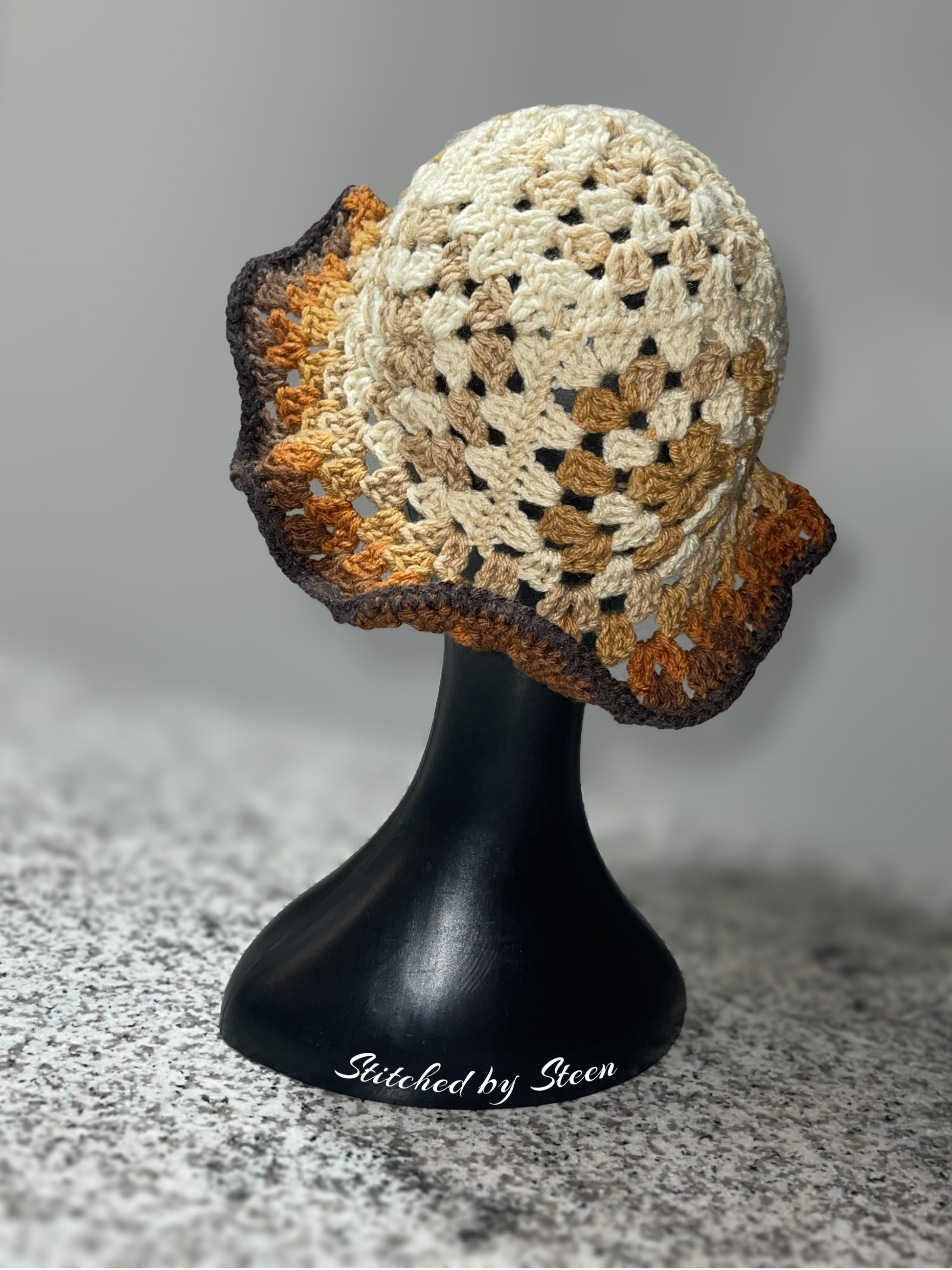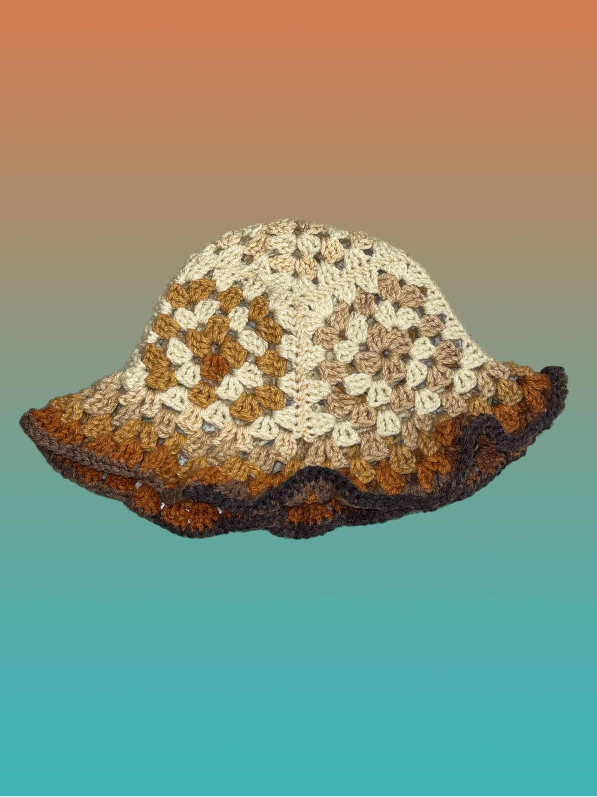 Hot Latte Granny Square Bucket Hat Featuring a chocolatey rich color palette full of neutral tones.